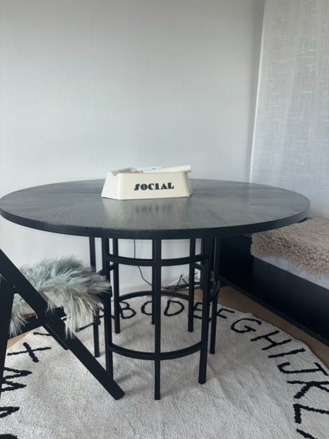 Sort rundt spisebord