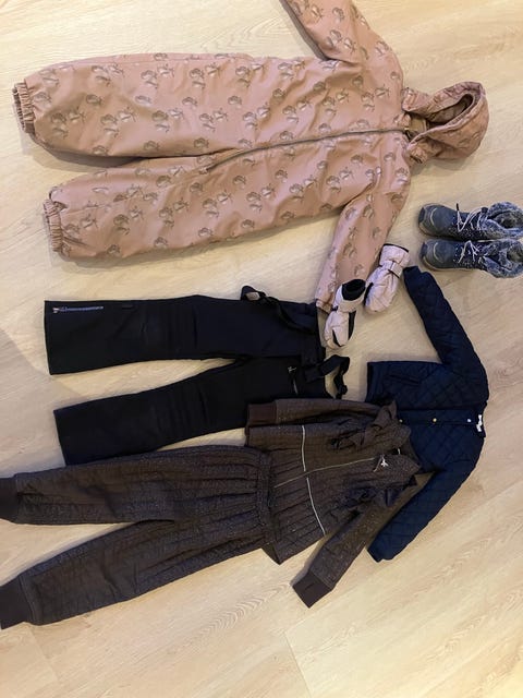 Om vinteren kan små børn holdes varme ved at klæde dem godt på: uldne heldragter, sokker, handsker, huer og overtøj. En flyverdragt er ofte hurtigere at tage på end separate jakker og bukser, og sne kommer ikke så nemt ind. I annonce(r)ne bør du tjekke tilstanden af overtøjet, fx hvor godt manchetter og ben kan strammes, om tøjet har mange reflekser, og om det er vandtæt.