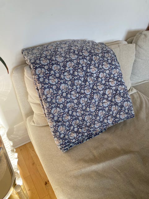 Blåt blomstret plaid tæppe