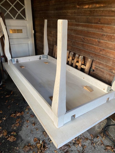 Spisebord i træ med hvidmalede ben