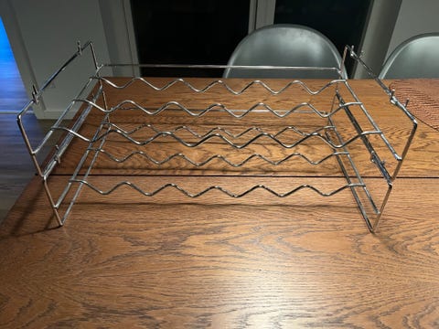 Råhvid skab med hylder.