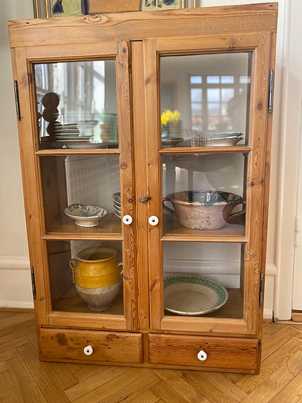 Gammel vitrineskab med glaslåger
