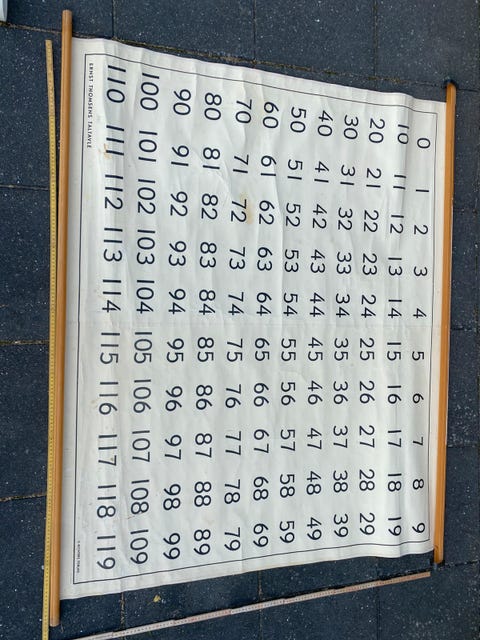 Gl. skolekort på lærred