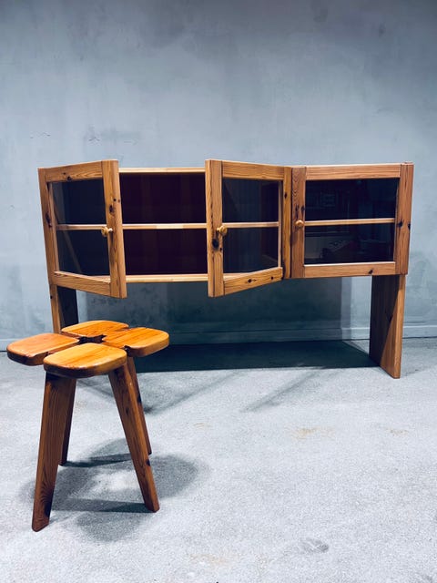 Fyrtræ skænk med glaslåger, 1970’