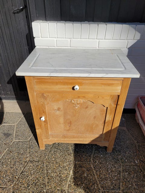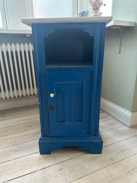 Blå skab med marmortop