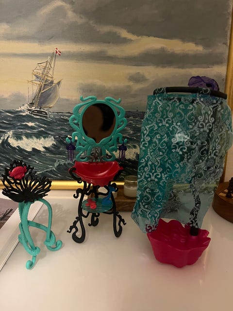 Dukkeautostol og badekar
