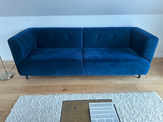 Flot, blå velour sofa