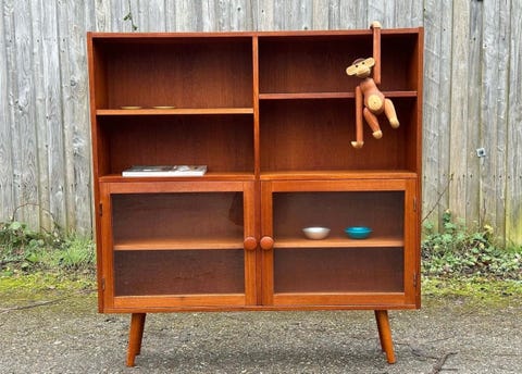 Teak bogreol med glasskab
