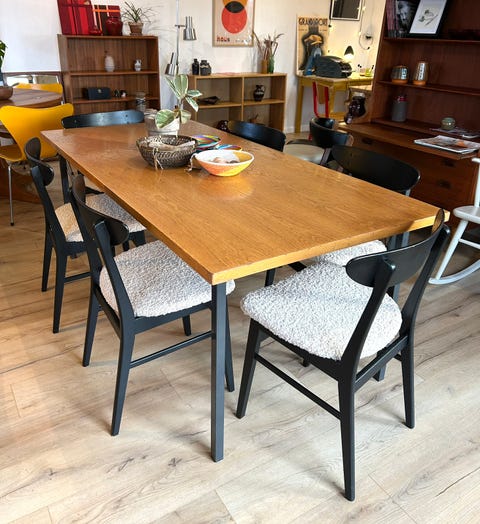 Spisebord i træ med metalben