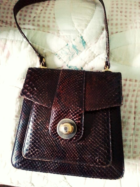 Brun slangeskindstaske