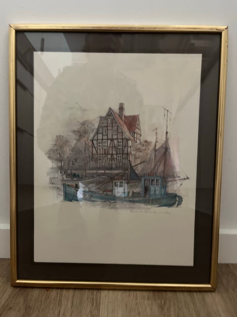 Maleri i guldramme 110x80 cm