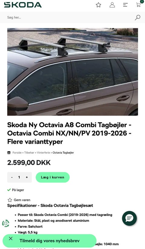 Tagbøjler, Skoda Ny Octavia A8 Combi