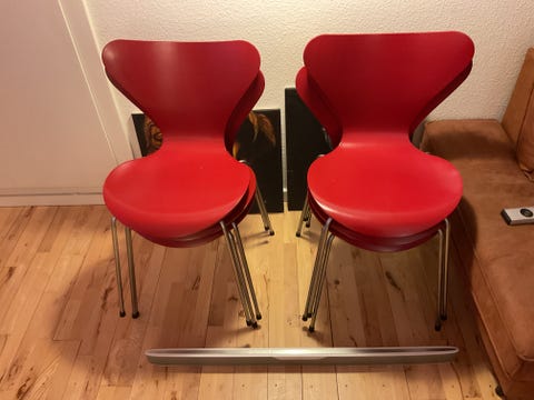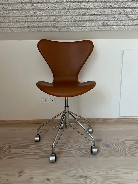 Arne Jacobsen 3207 Syver Armstole – Nypolstret i Cognac Læder & Sort Stel 7er