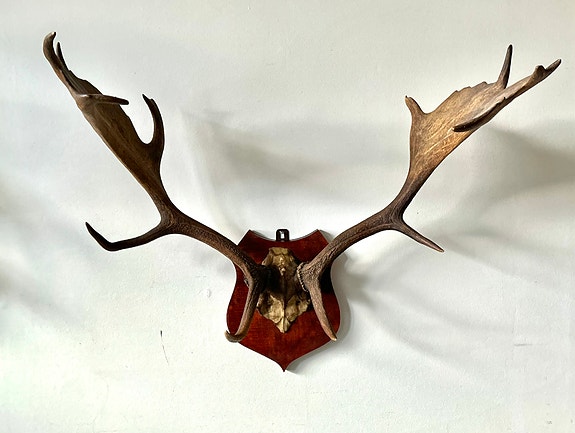 Kronhjort Gevir på træplade.