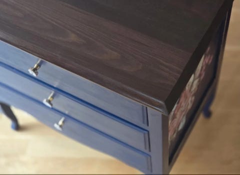 Kommode med sjæl, blomster og trætop