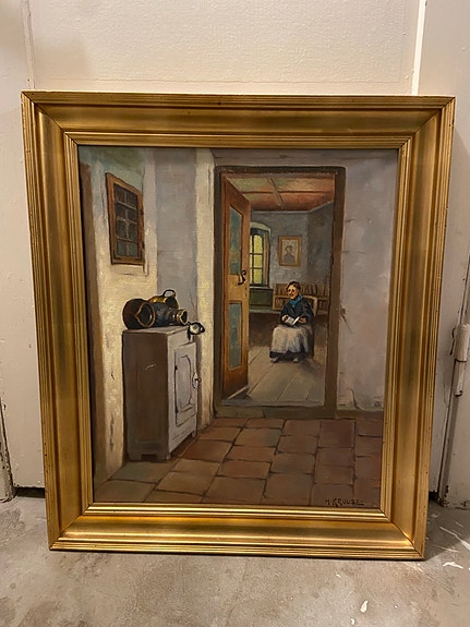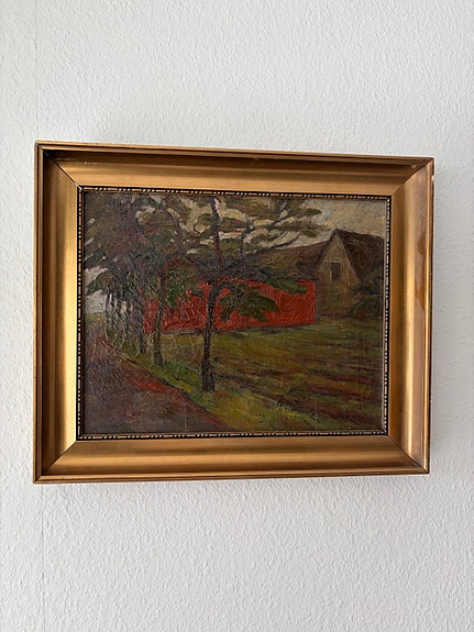 Landskabsmaleri i guldramme