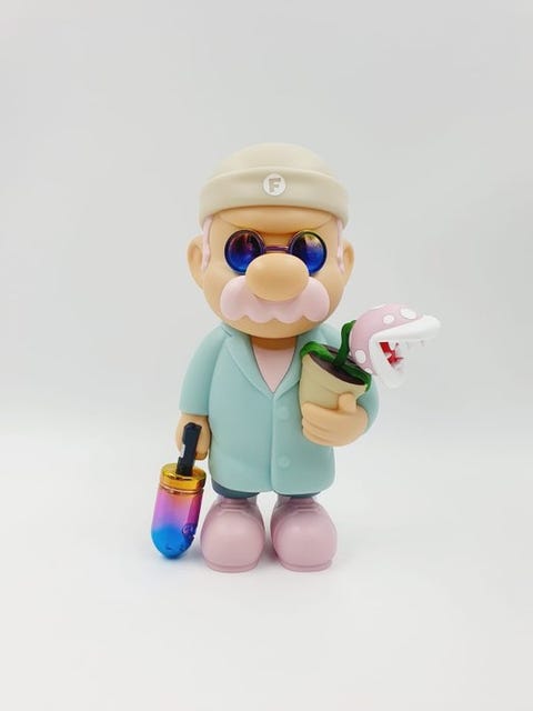 Tre håndmalede frugter
