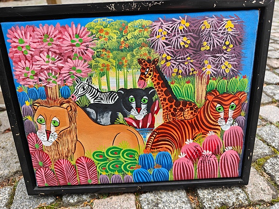 Maleri, jungle med vilde dyr