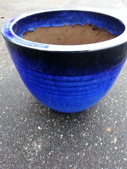 Blå keramik urtepotte
