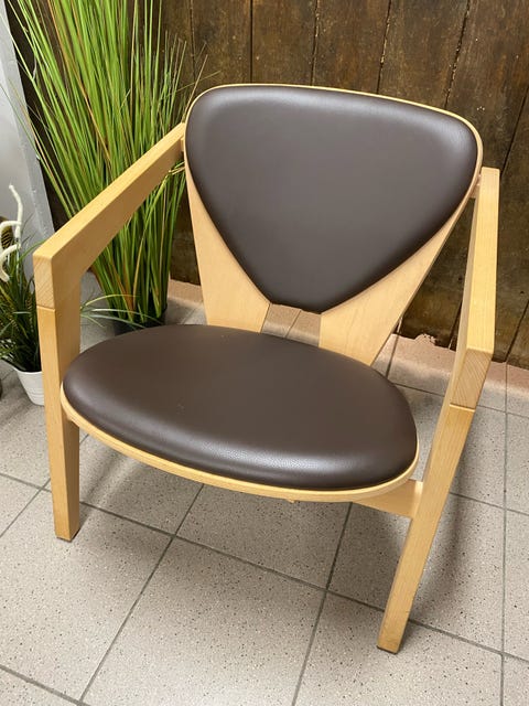 Hans J Wegner lænestol med gråt stof og egetræsramme. kom med et realistisk bud.