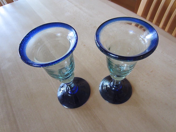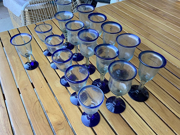 2 stk. Vinglas med blå kant