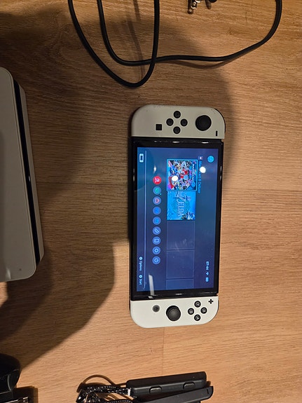 Nintendo Switch OLED (hvid) – komplet sæt + 128GB microSD + Etui – perfekt stand