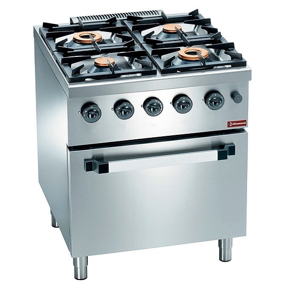 Gaskomfur 4 blus, med ovn GN 2/1