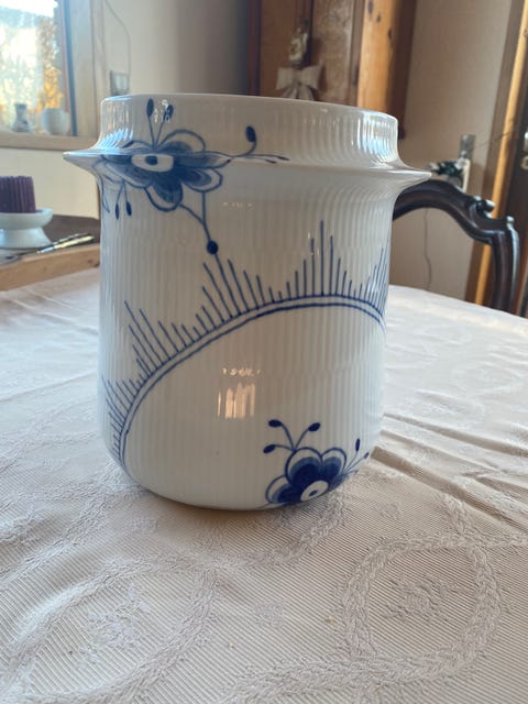 Royal Copenhagen, Liselund, kaffekop og tallerken sæt med blå og guld mønster