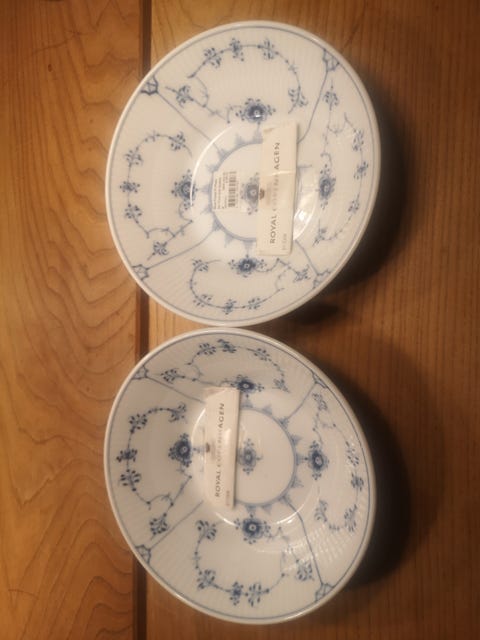 Royal Copenhagen Kongelig porcelæn Mussel blue fluted Pl plate Helt NY 2 stk.