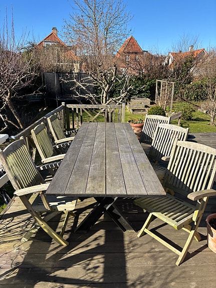 Havemøbelsæt med langbord af planker