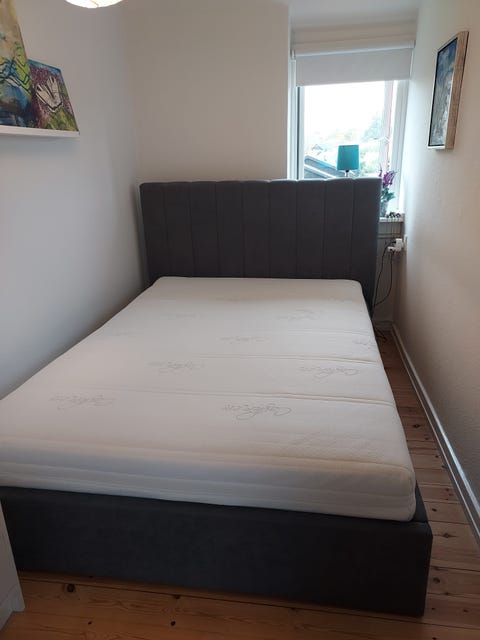 Flot grå seng, 160x200 cm
