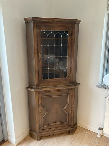 Vitrineskab hjørneskab træ glaslåger