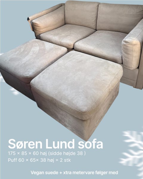 Vegan ruskinds sofa med 2 x puf
