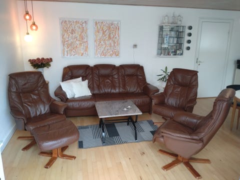Hjørnesofa og lænestol med puf