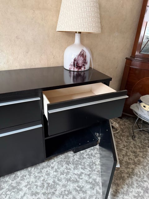 Sort skænk m glas 140x40 cm