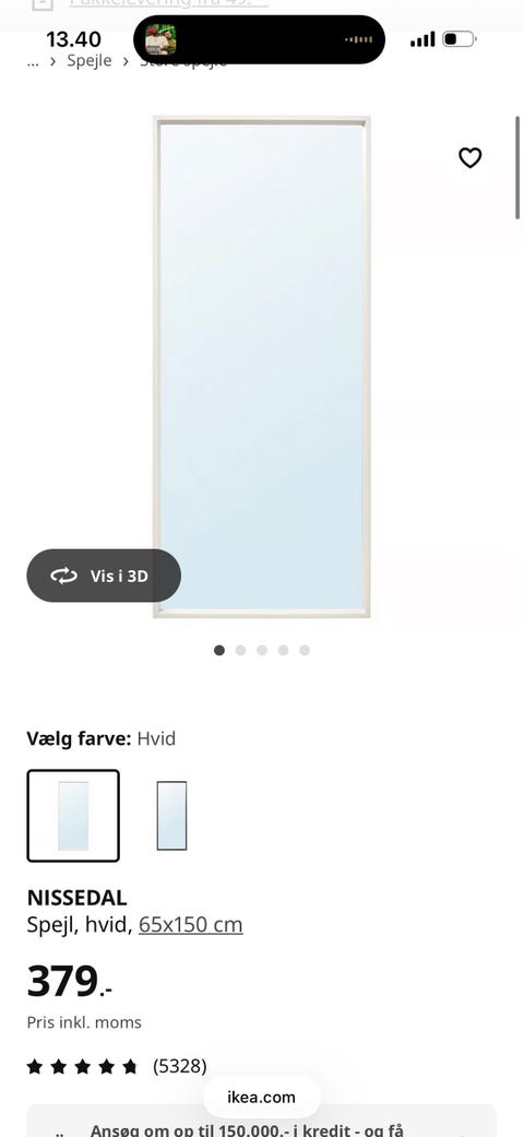 Spejl i hvid træramme