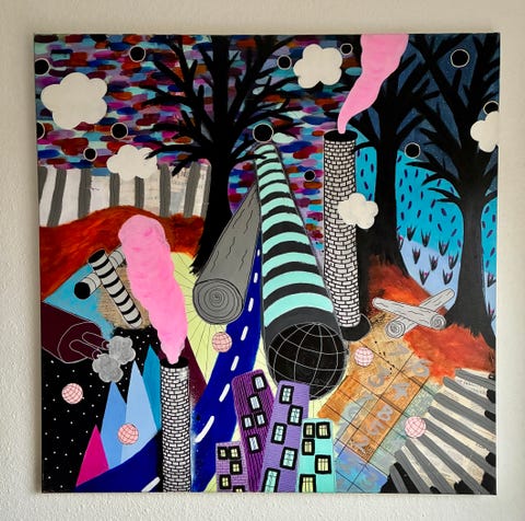 Stort akrylmaleri malet med spartel.