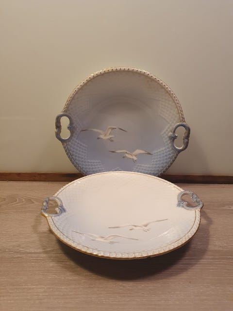 2 stk mågefad med guldkant