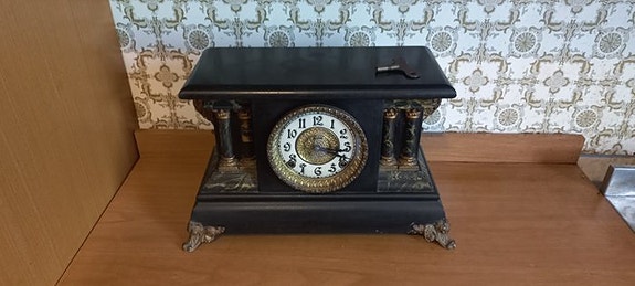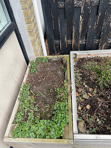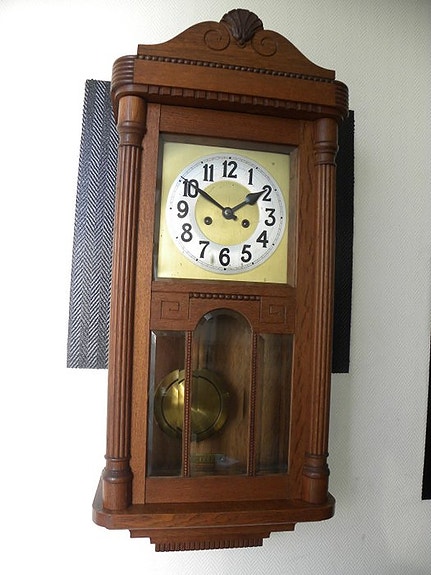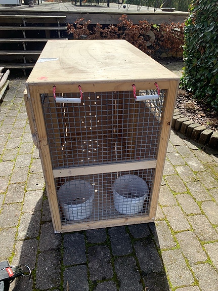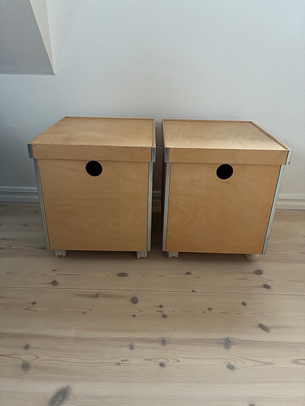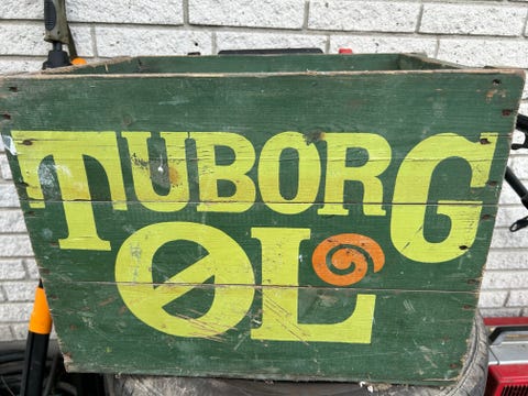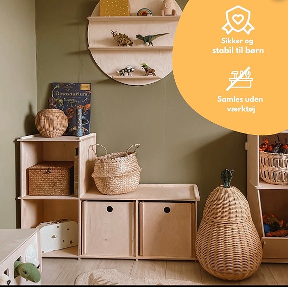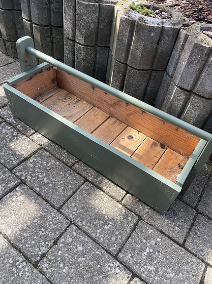 EN GL TRÆ TRILLEBØR MED JERN HJUL.