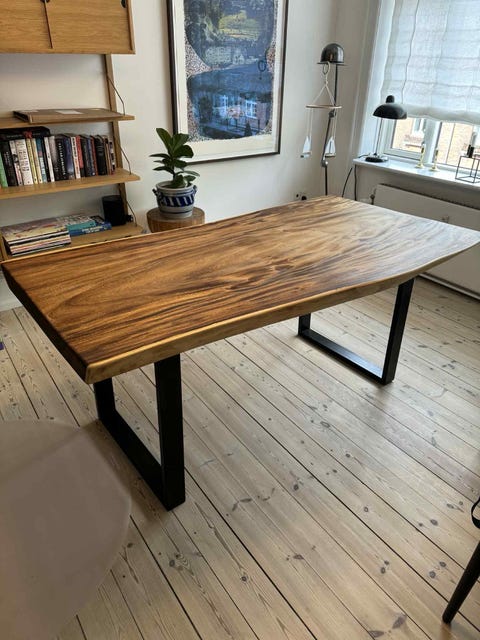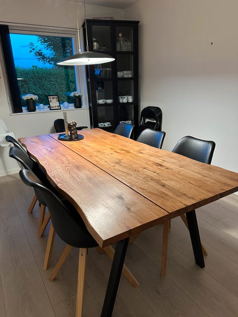 Spisebord i træ med sorte metalben