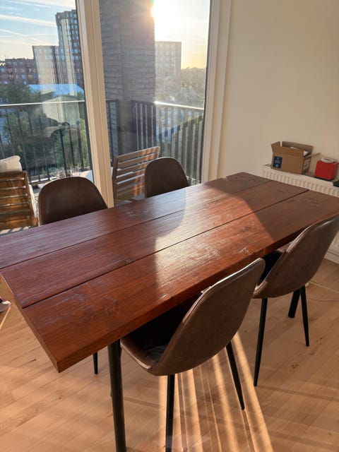 Spisebord i træ med plader