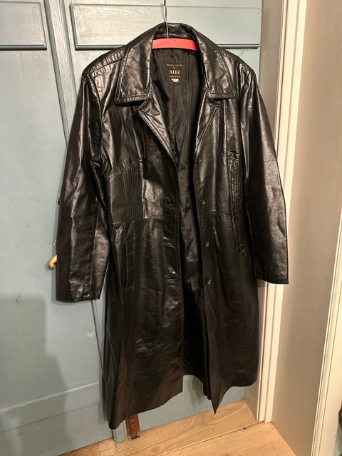 Lang blazer med nederdel med smukt kobberfarvet tryk. Fra 90 erne så nok vintage