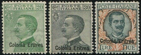 1.490 kr.Italienske Eritrea 1925 - Vittorio Emanuele III, 3 værdier, der er fremragend...København K4 t.Catawiki B.V. Føj til favoritter.