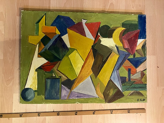 800 kr.Abstrakt maleri med geometriske former i blå og okker nuancerRisskov1. mar.Føj til favoritter.