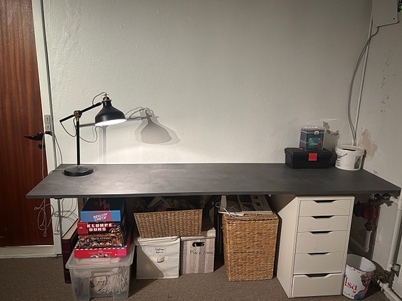 Find et brugt skrivebord til en lavere pris. På DBA er der 3.721 annonce(r), der sælger skriveborde. ## Et lille skrivebord kan gøre stor glæde Et skrivebord, der er unødvendigt for en anden, kan være det helt rigtige til dine behov. Især et skrivebord i massivt træ eller et elektrisk skrivebord kan være et dyrt køb, og du kan finde et velegnet produkt væsentligt billigere brugt. Et godt skrivebord har en velegnet højde for brugeren eller kan justeres. Når du gennemser annonce(r)ne, bør du tjekke bordets dimensioner og sammenligne dem med den bedste arbejdshøjde for dig.
