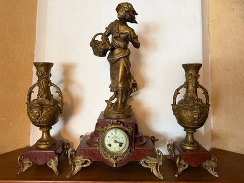 1.490 kr.Ur- og garnituresæt - Råzink, Messing - 1880-1920 - Høstpige af MoreauKøbenhavn K22 t.Catawiki B.V. Føj til favoritter.