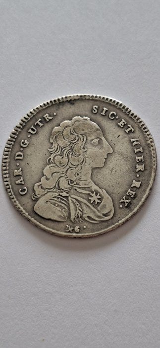 2.049 kr.Italien, Kongeriget Napoli Carlo di Borbone (1735-1759). 1/2 Piastra da 60 Gr...København K1 t.Catawiki B.V. Føj til favoritter.