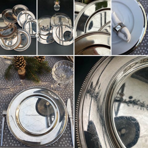 50 kr.Dækketallerkner i sølvplet og blankpoleret stålVejle2. juniPaulineK - VintageFøj til favoritter.