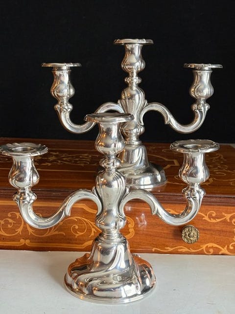 1.676 kr.Kandelaber Meget smukke par antikke Alpaca-kandelabre. (2) - ForsølvetKøbenhavn K22 t.Catawiki B.V. Føj til favoritter.