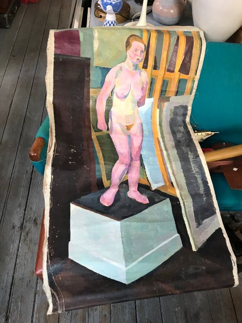 Kæmpe vintage nøgenstudie maleri